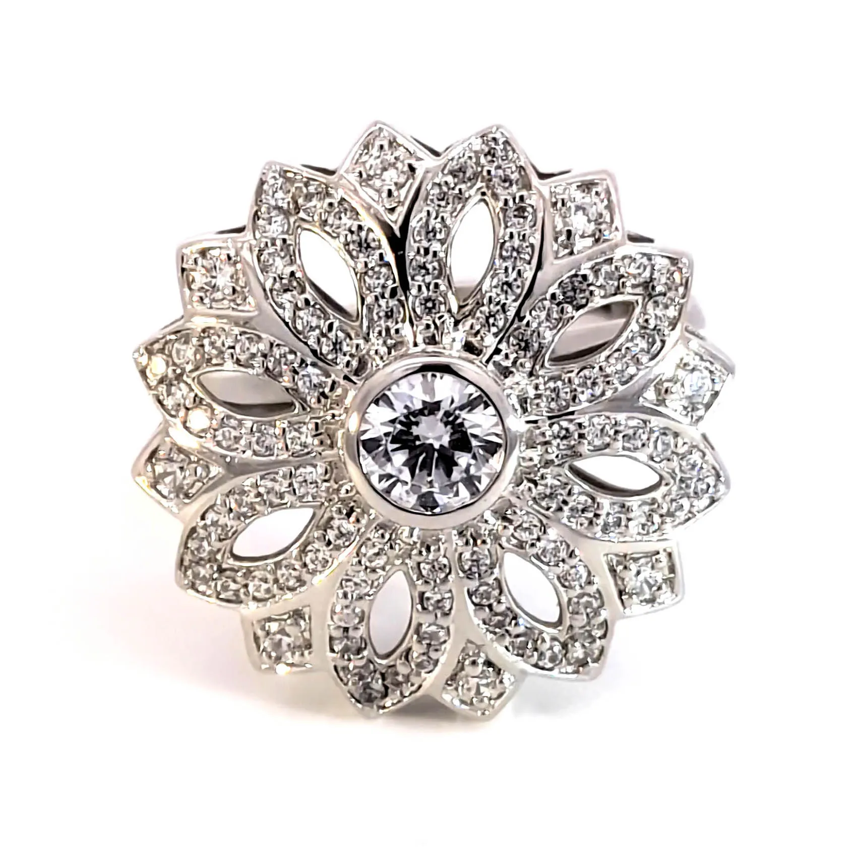Browse our cluster ring collection — intricate multi-stone designs that create a stunning, textured effect.