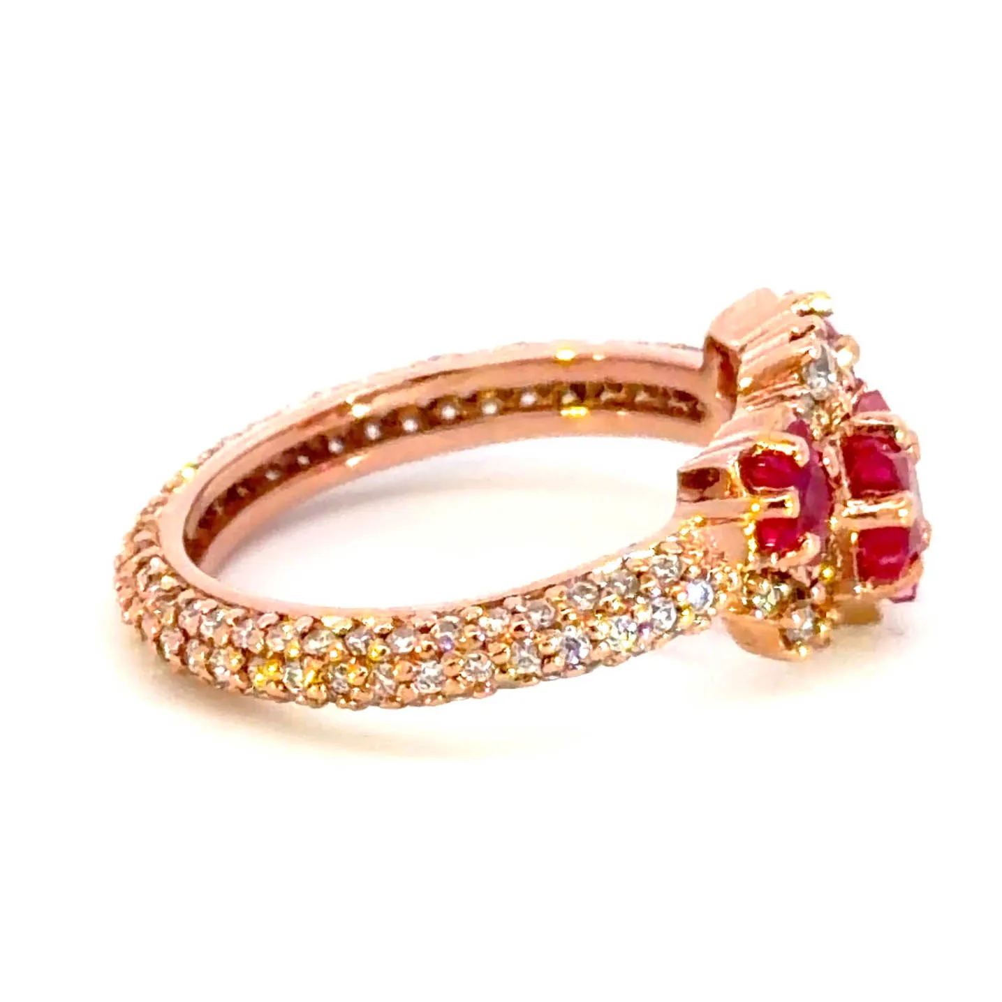 Exquisite cocktail ring featuring a vibrant, red ruby gemstone cut in a star shape with a mixed cutting style. Set in elegant rose gold, this statement piece radiates warmth and sophistication. The ruby's captivating hue and the rose gold's gentle sheen create a harmonious blend of luxury and unique design, perfect for adding a touch of glamour to any ensemble.