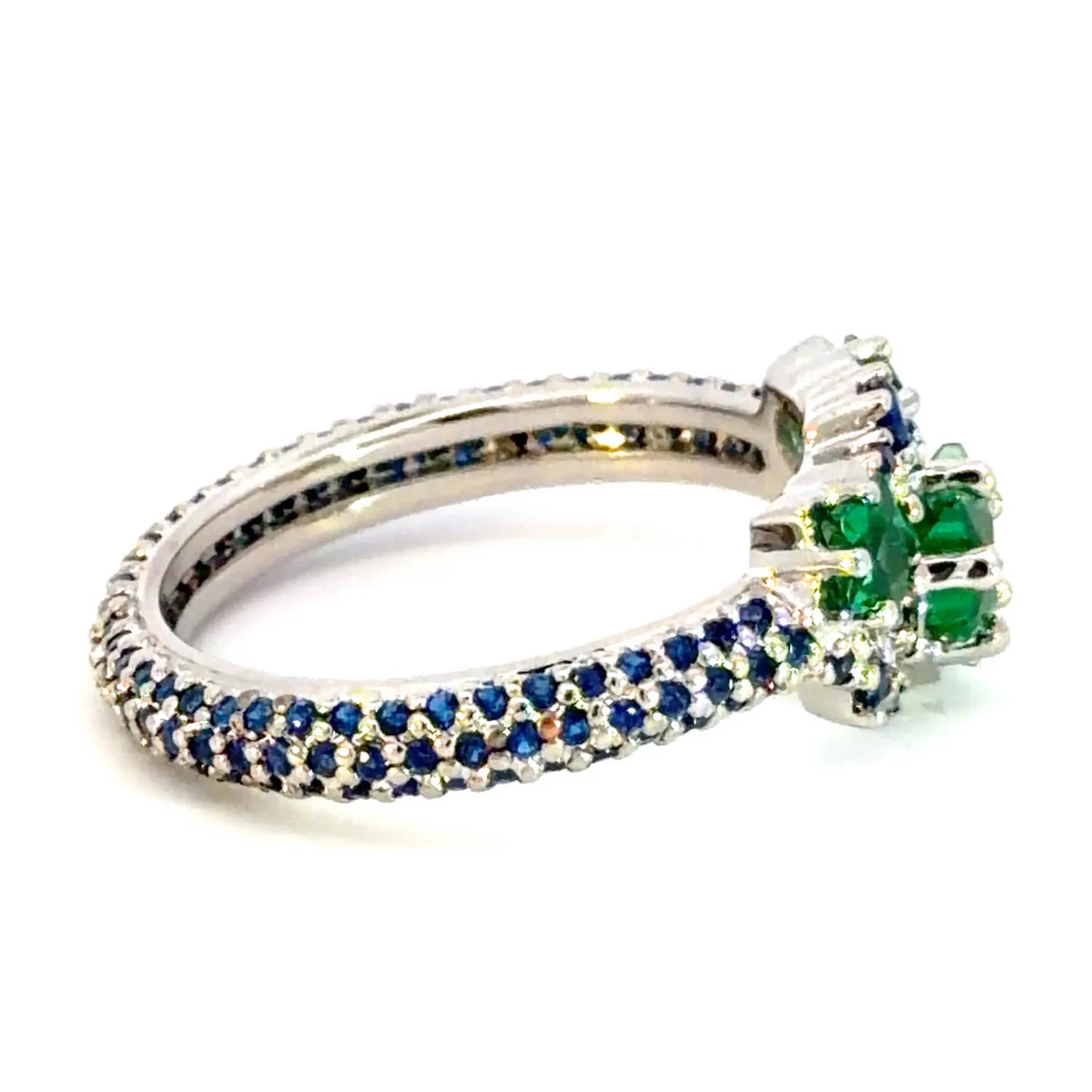 Emerald with Dark Sapphire, Platinum Plated