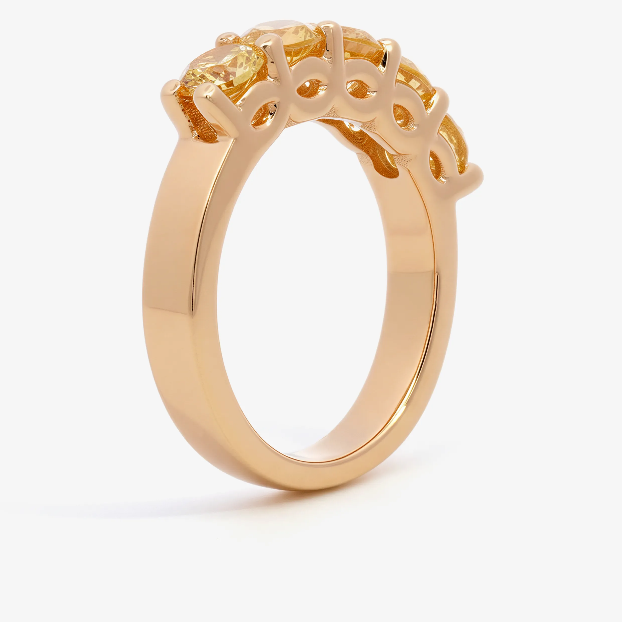 Elevate your style with this radiant multistone ring, expertly crafted in lustrous yellow gold. This ring features a series of round brilliant cut American Diamonds, each displaying a captivating white. A sophisticated piece offering a harmonious blend of warmth and brilliance.