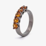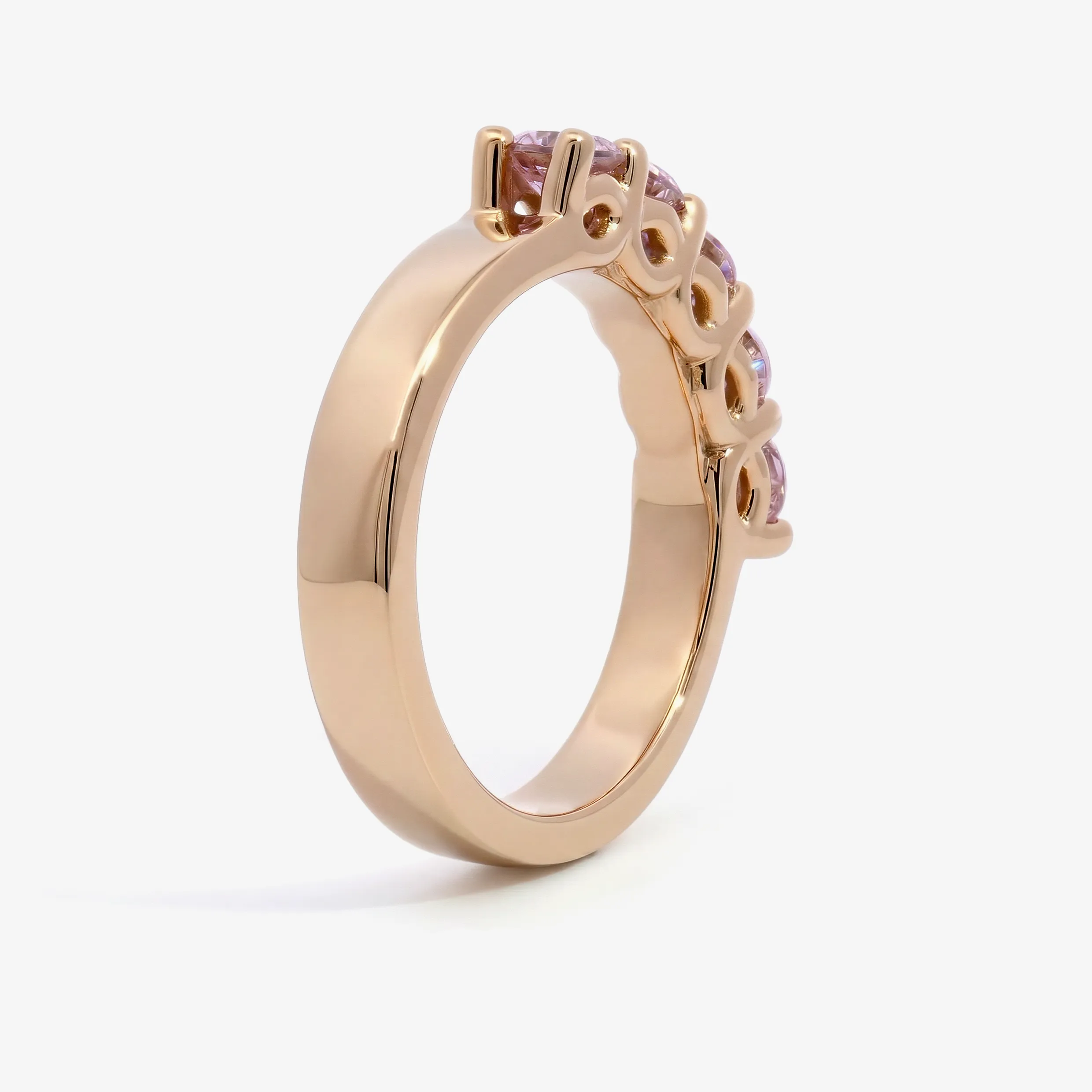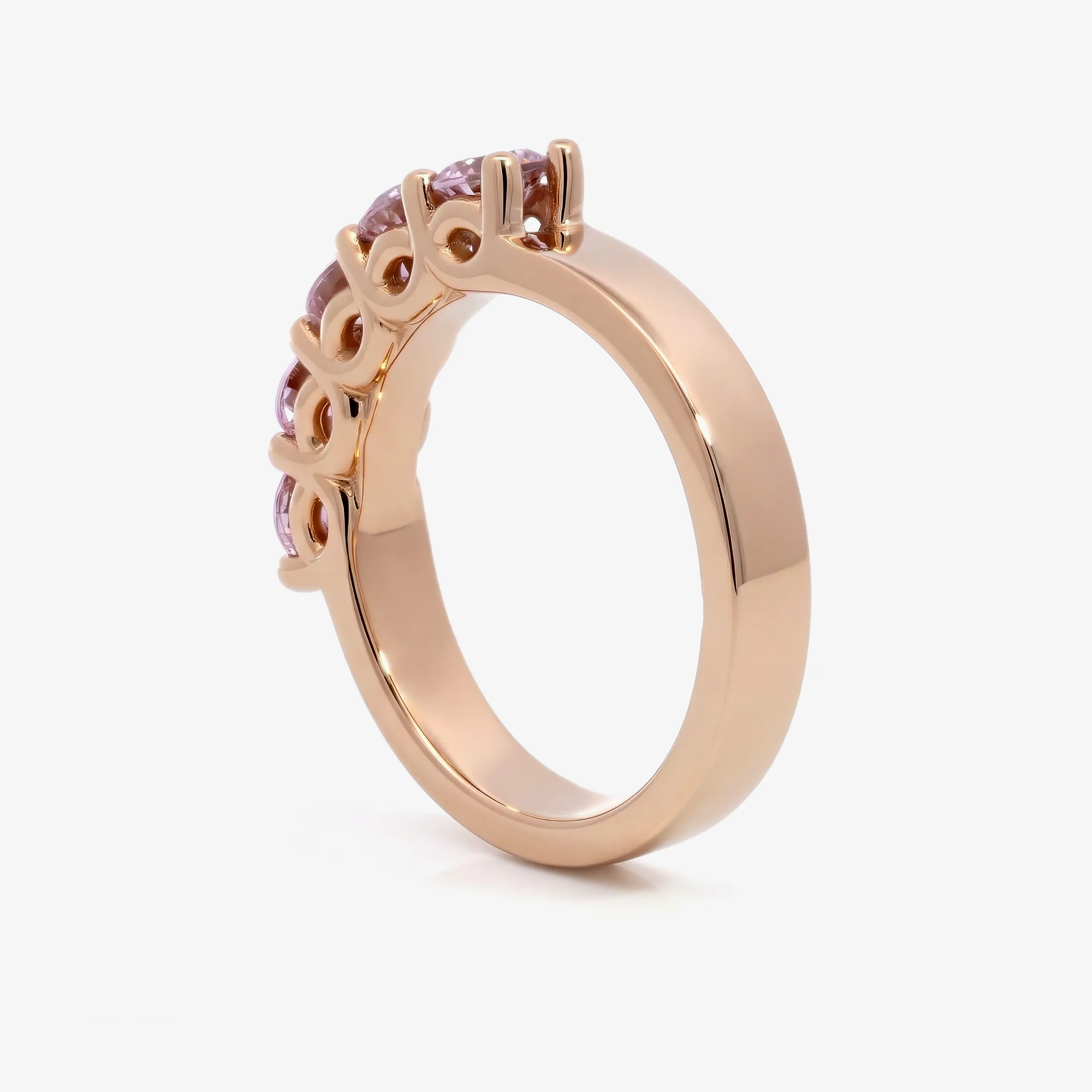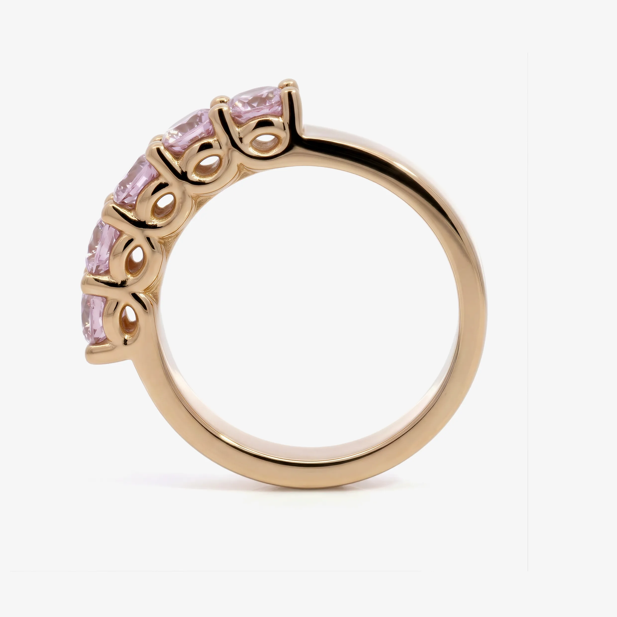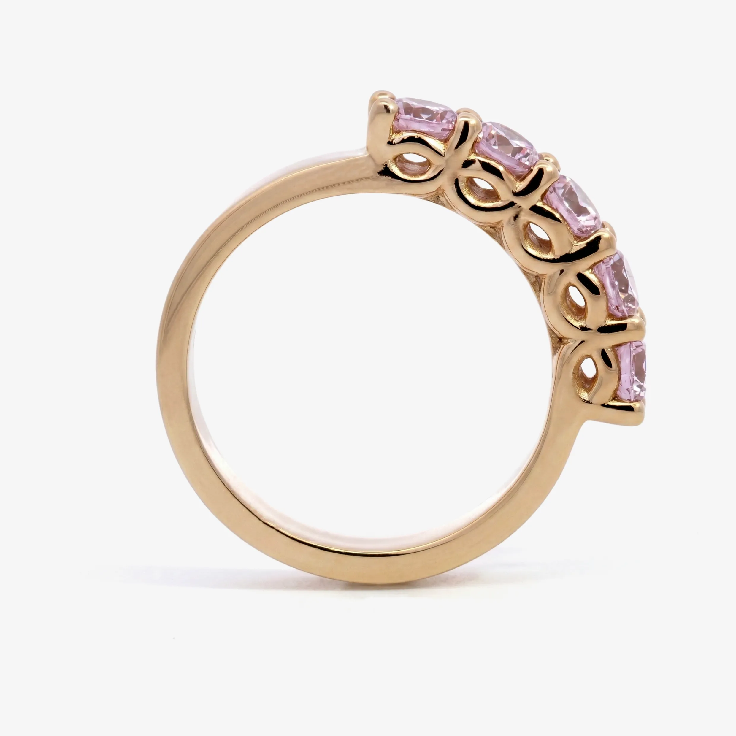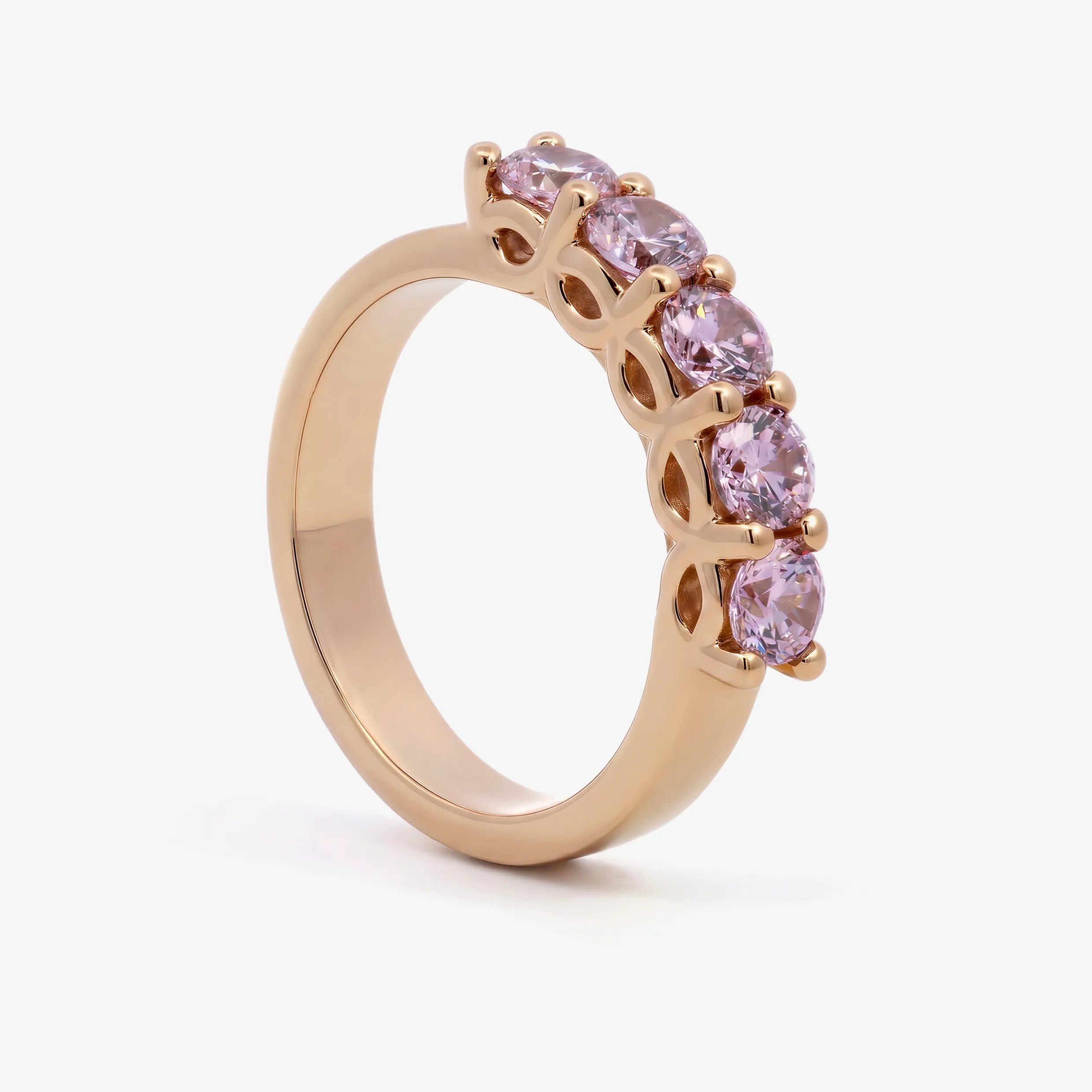 Elevate your style with this radiant multistone ring, expertly crafted in lustrous yellow gold. This ring features a series of round brilliant cut Indian Pinks, each displaying a captivating pink hue. A sophisticated piece offering a harmonious blend of warmth and brilliance.