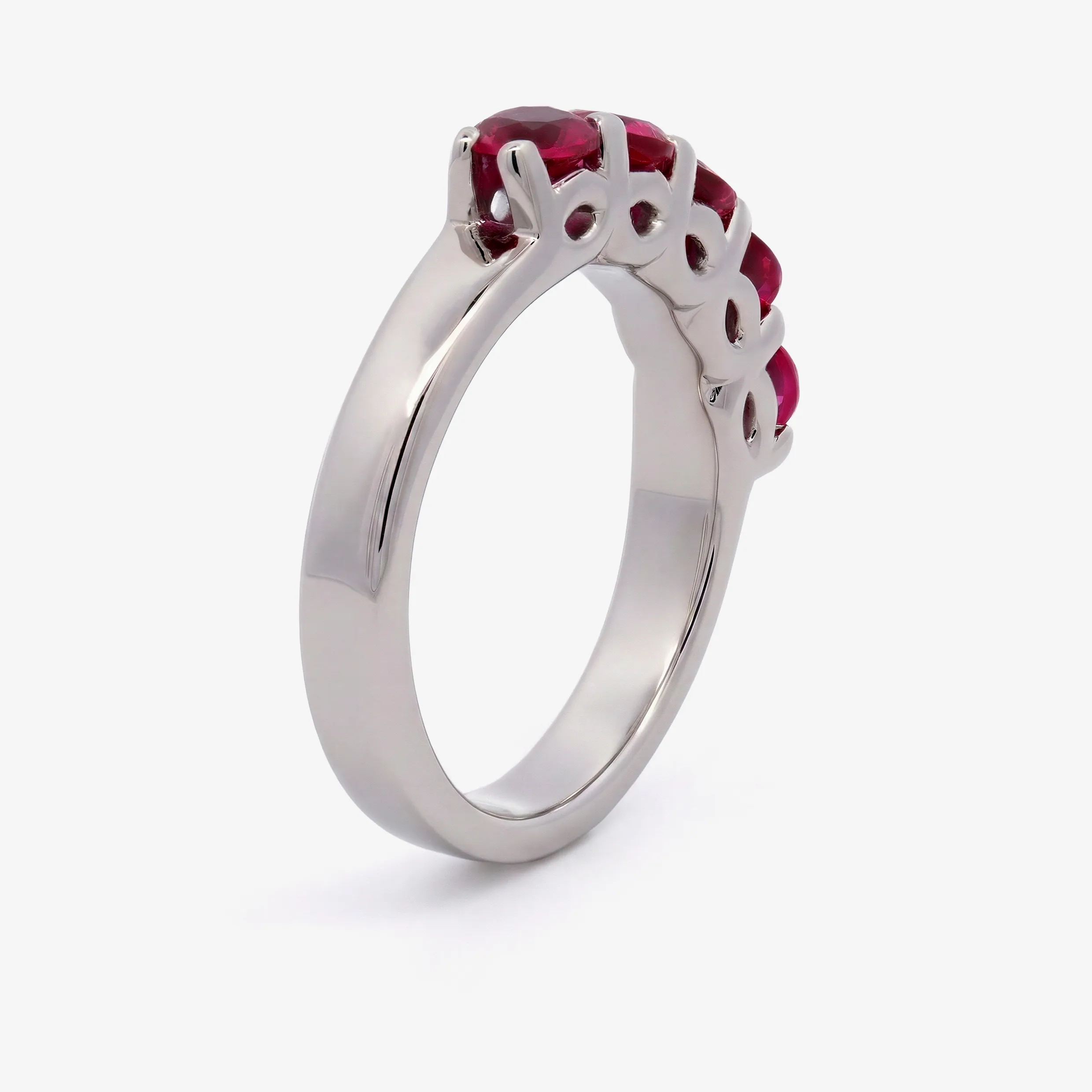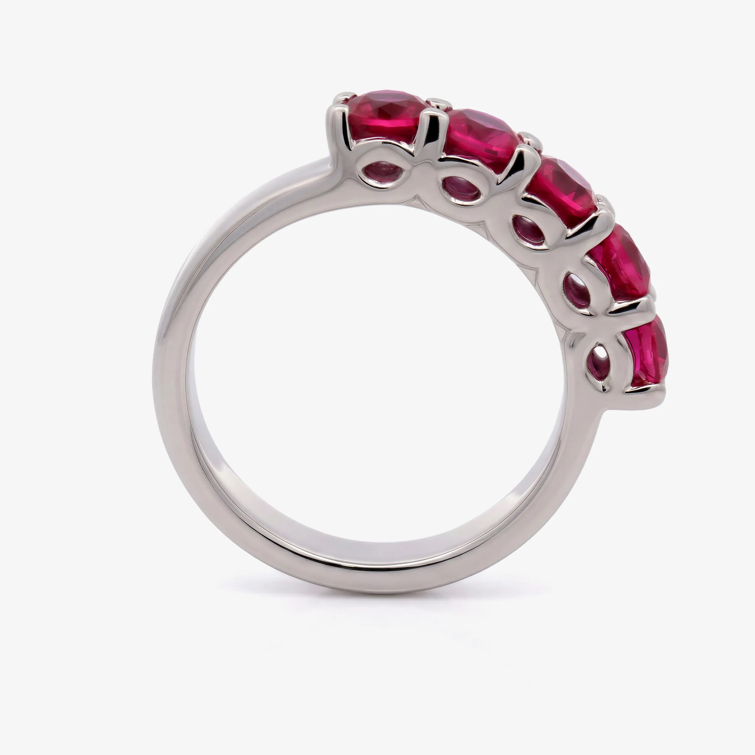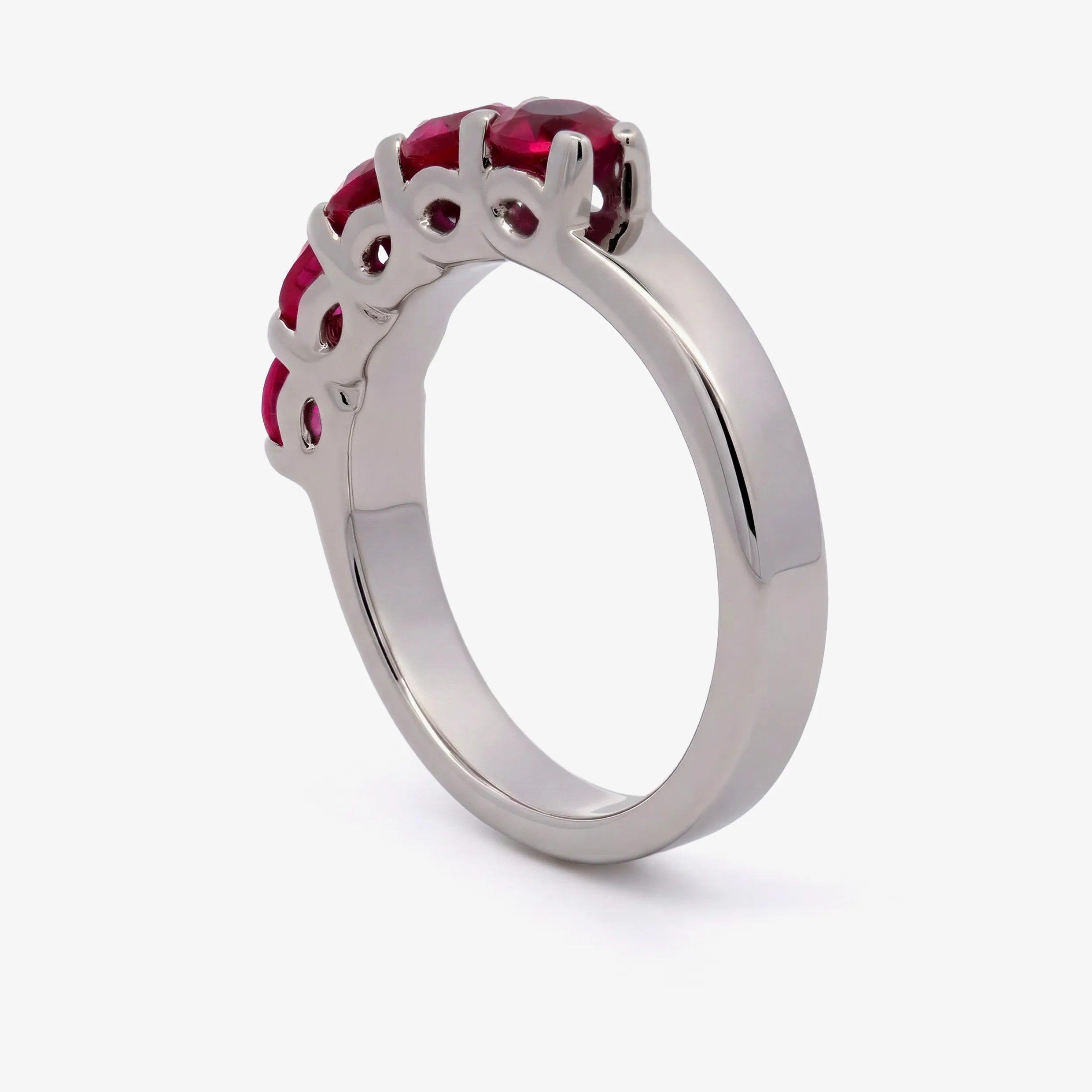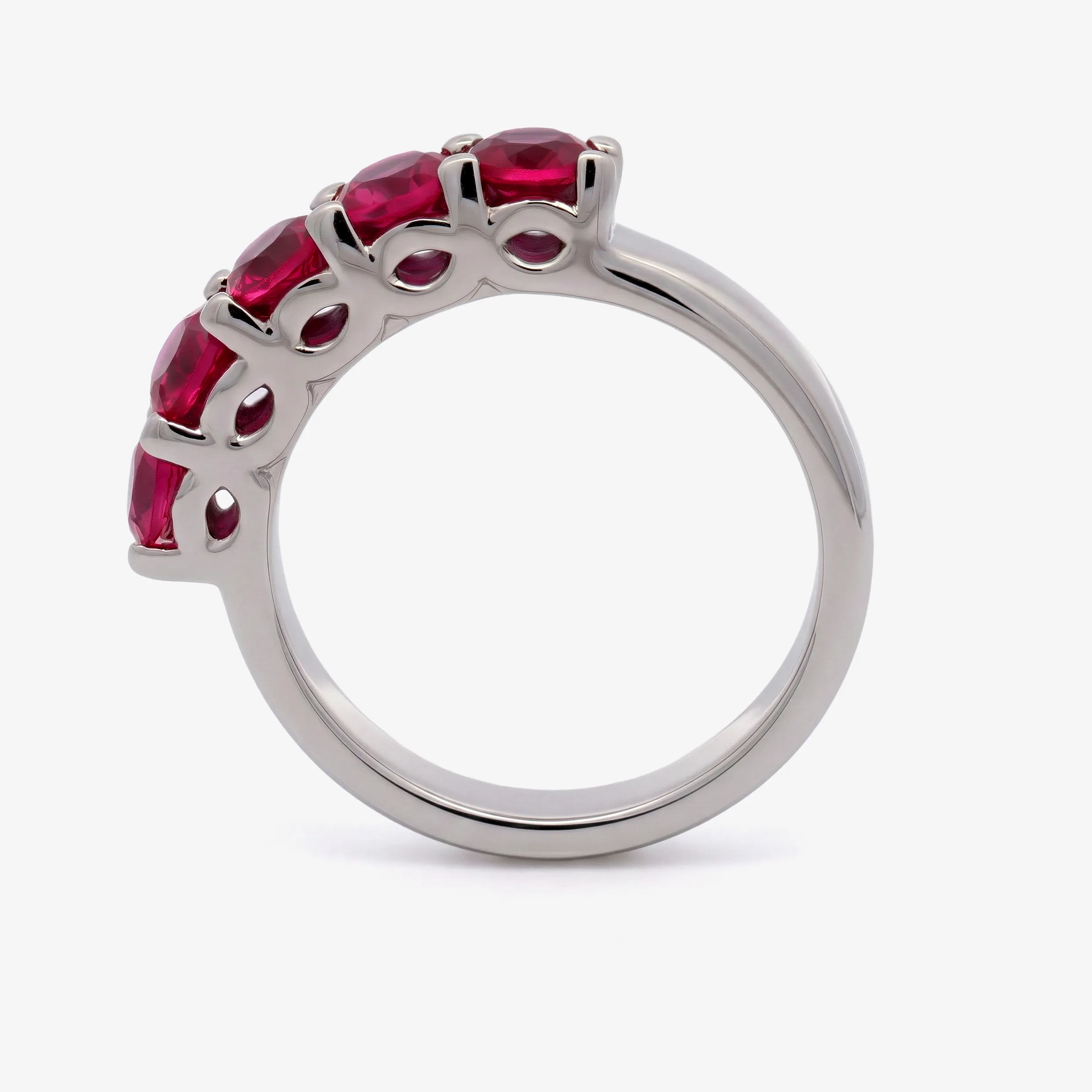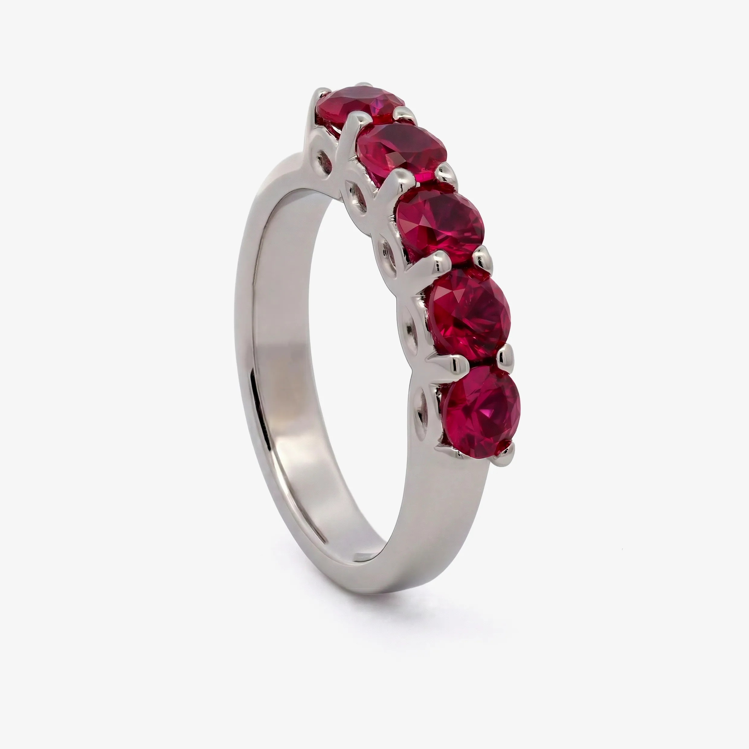 Elevate your style with this radiant multistone ring, expertly crafted in lustrous white gold. This ring features a series of round brilliant cut Ruby, each displaying a captivating red. A sophisticated piece offering a harmonious blend of warmth and brilliance.