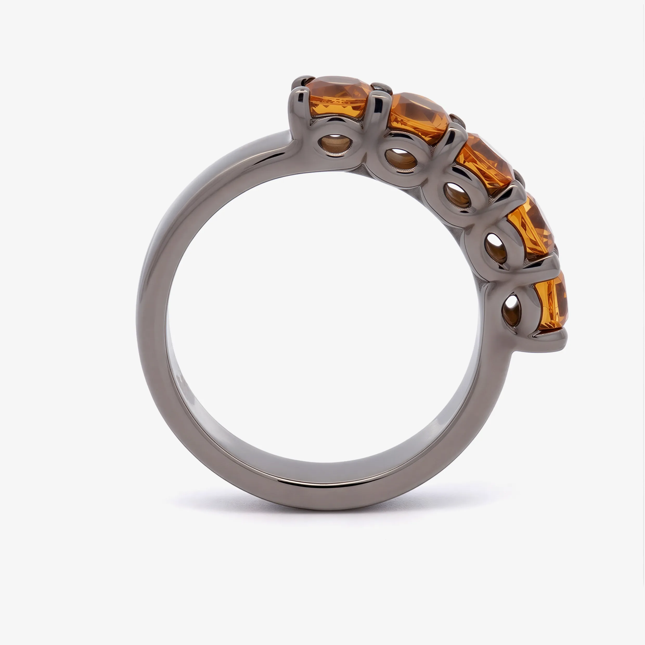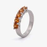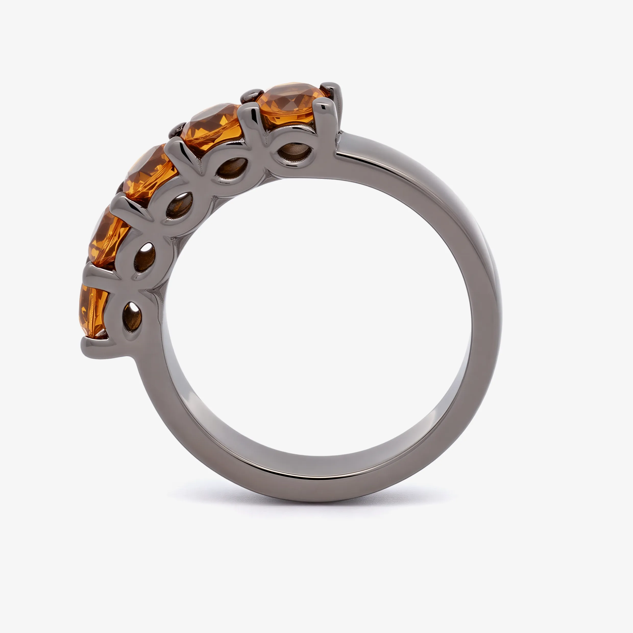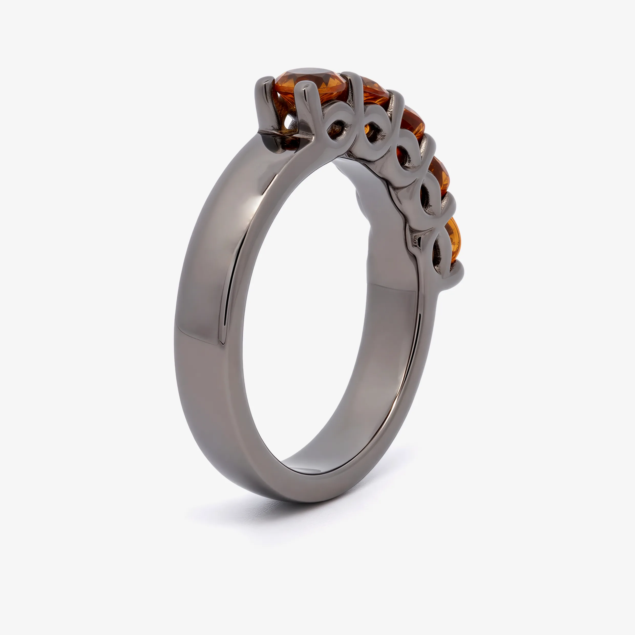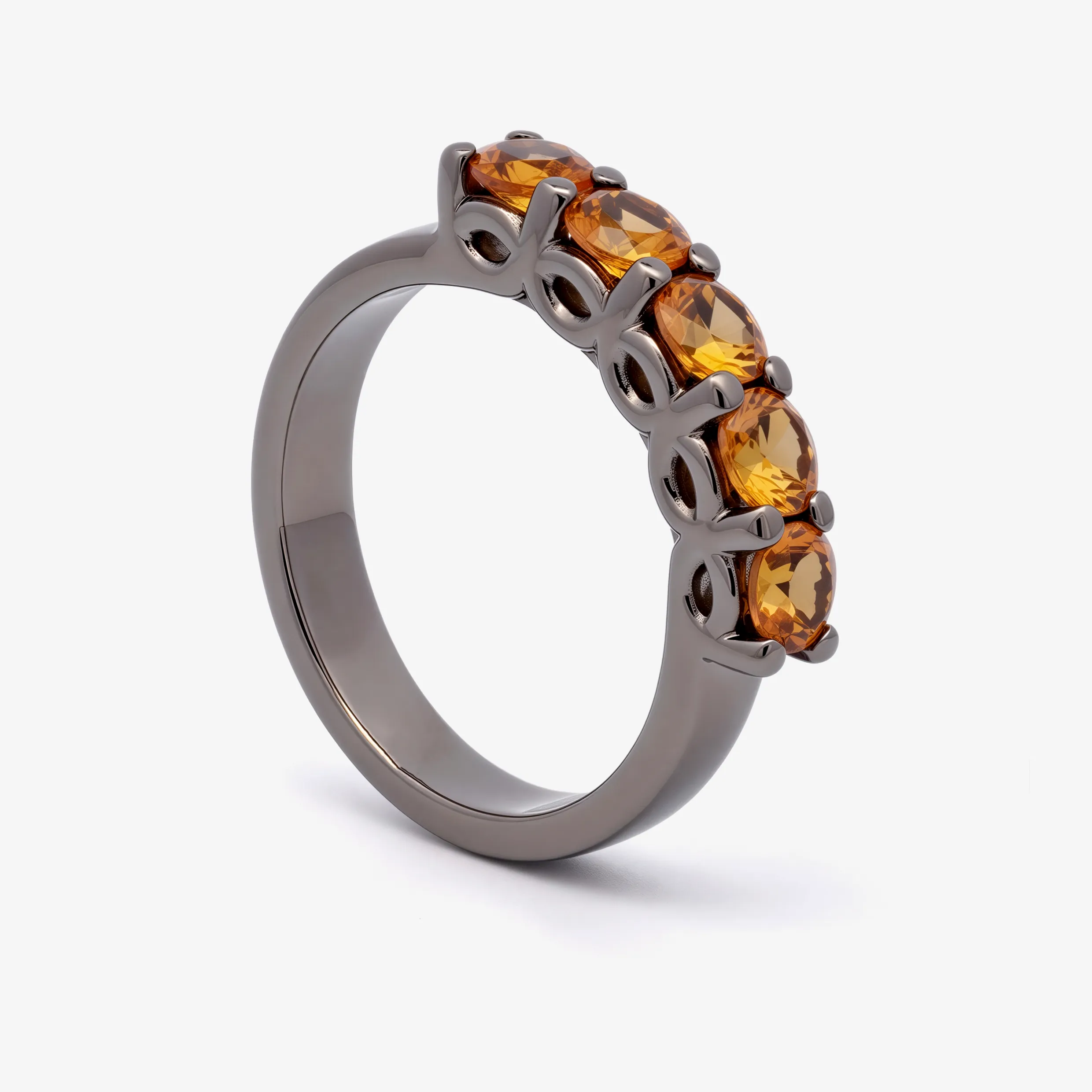 Elevate your style with this radiant multistone ring, expertly crafted in lustrous ruthenium. This ring features a series of round brilliant cut sapphire, each displaying a captivating orange. A sophisticated piece offering a harmonious blend of warmth and brilliance.