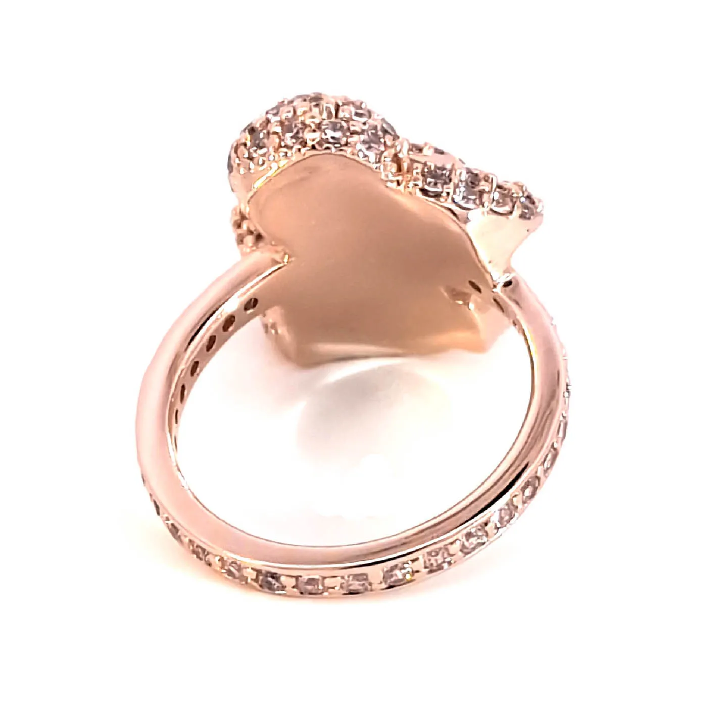 Indulge in the allure of this enchanting rose gold cocktail ring with Rabbit, crafted with meticulous detail from lustrous gold. The ring features a cluster of round cut diamonds set in a brilliant arrangement. Its front facing design adds an irresistible charm, making it an exquisite addition to any jewelry collection.