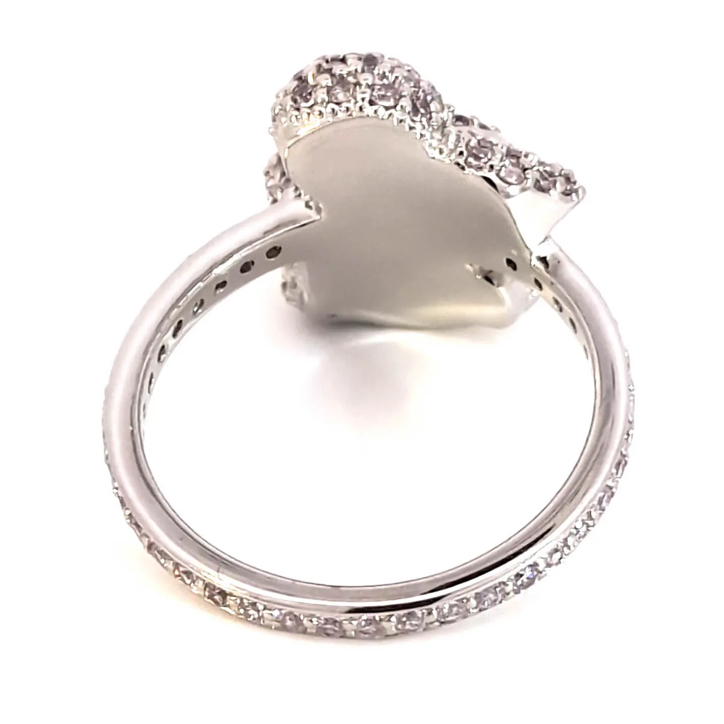 Exude glamour with this exquisite cocktail ring, meticulously crafted in gleaming white gold over a silver base with Rabbit. The ring features a dazzling round cut diamond, set in a brilliant arrangement, designed to capture and reflect light from every angle.