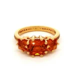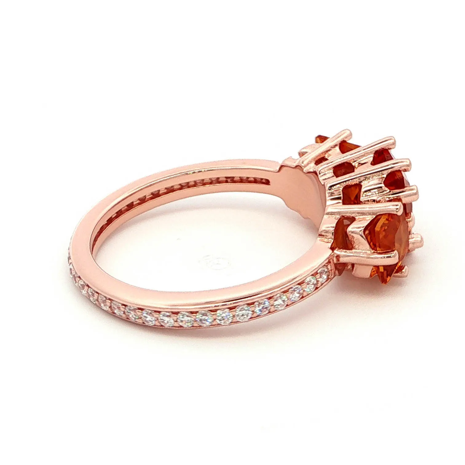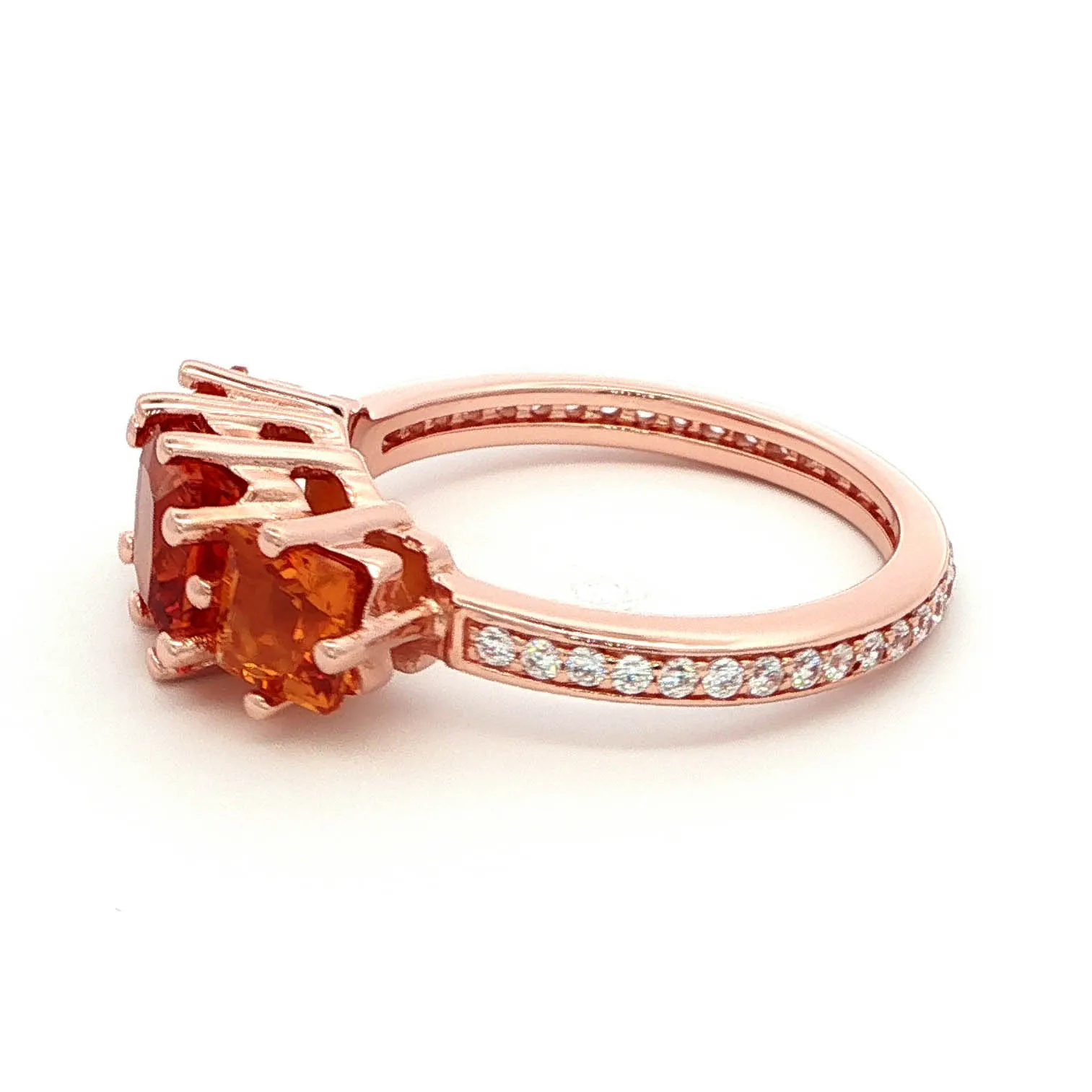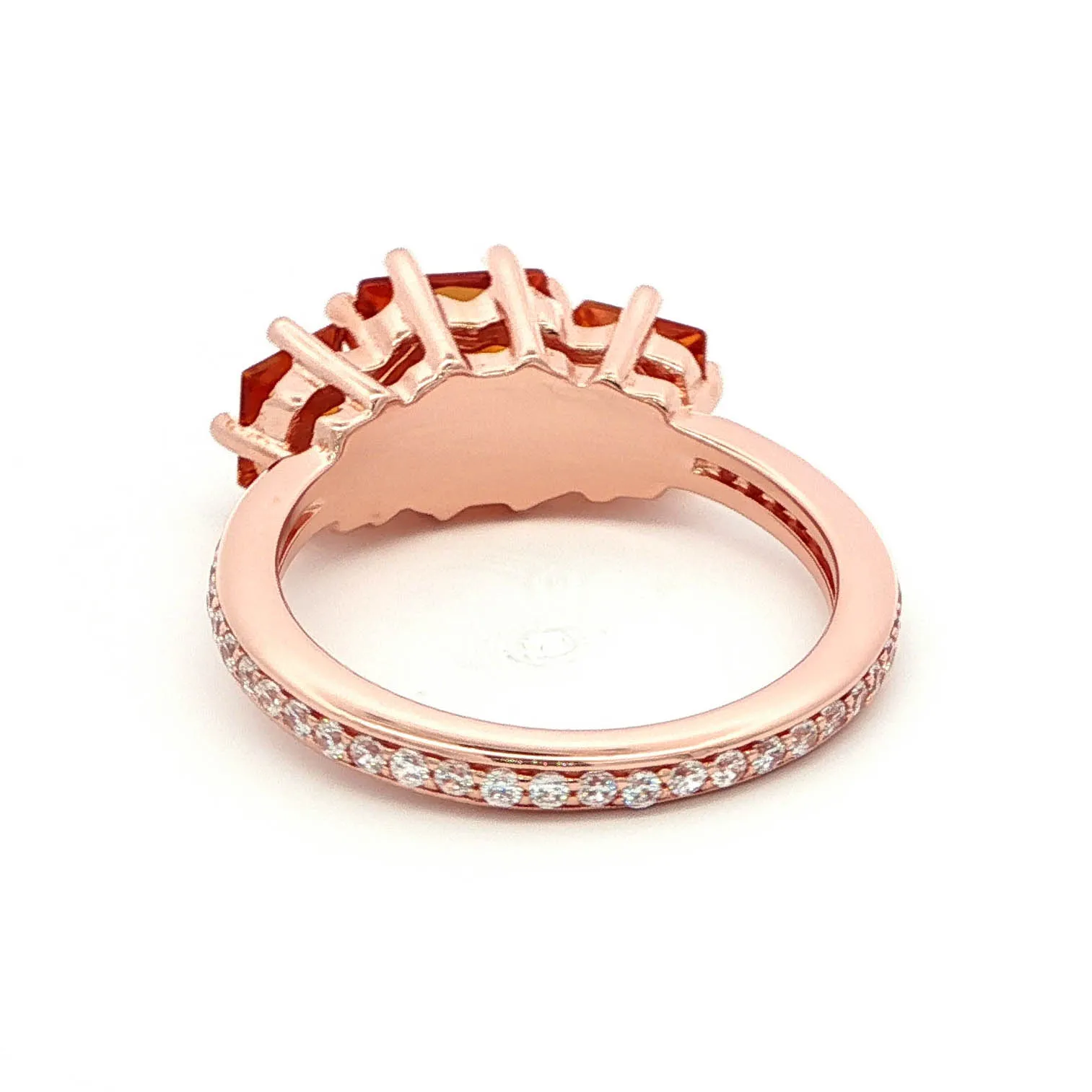 Adorn your finger with this exquisite rose gold ring, showcasing three square step cut citrines that radiate a vibrant orange hue. This multistone ring is a testament to refined elegance, perfect for adding a touch of warmth and sophistication to any ensemble.