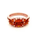 Exquisite multistone ring featuring radiant, emerald cut citrine gemstones set in gleaming white gold over silver. This captivating piece boasts brilliant, transparent, orange citrines, each carefully step cut to enhance its natural luster. Perfect for adding a touch of warmth and elegance to any ensemble.