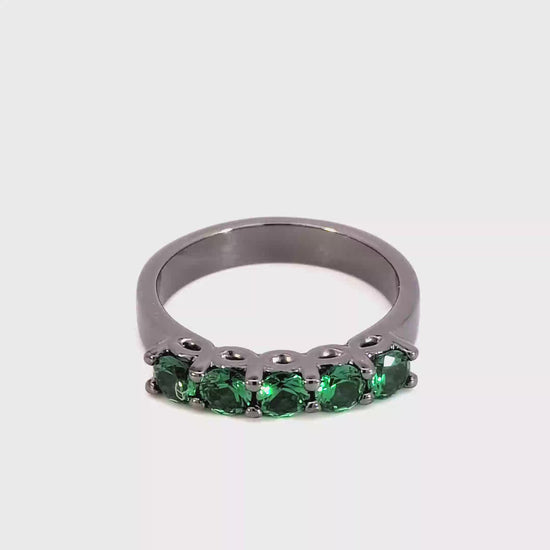 Enhance your jewelry collection with this exquisite multi stone ring, masterfully crafted with a non metal base material finished with yellow gold plating. The focal point is the set of round cut emeralds, their green hue captivatingly vivid. Each emerald boasts brilliant cutting style that optimizes light reflection, ensuring a mesmerizing display of sparkle.