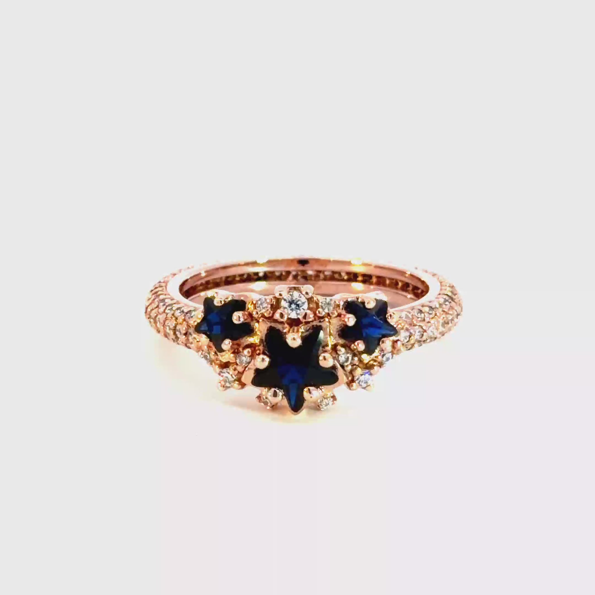 Rose Gold Multistone Ring with Star-Shaped Deep Blue Sapphires
