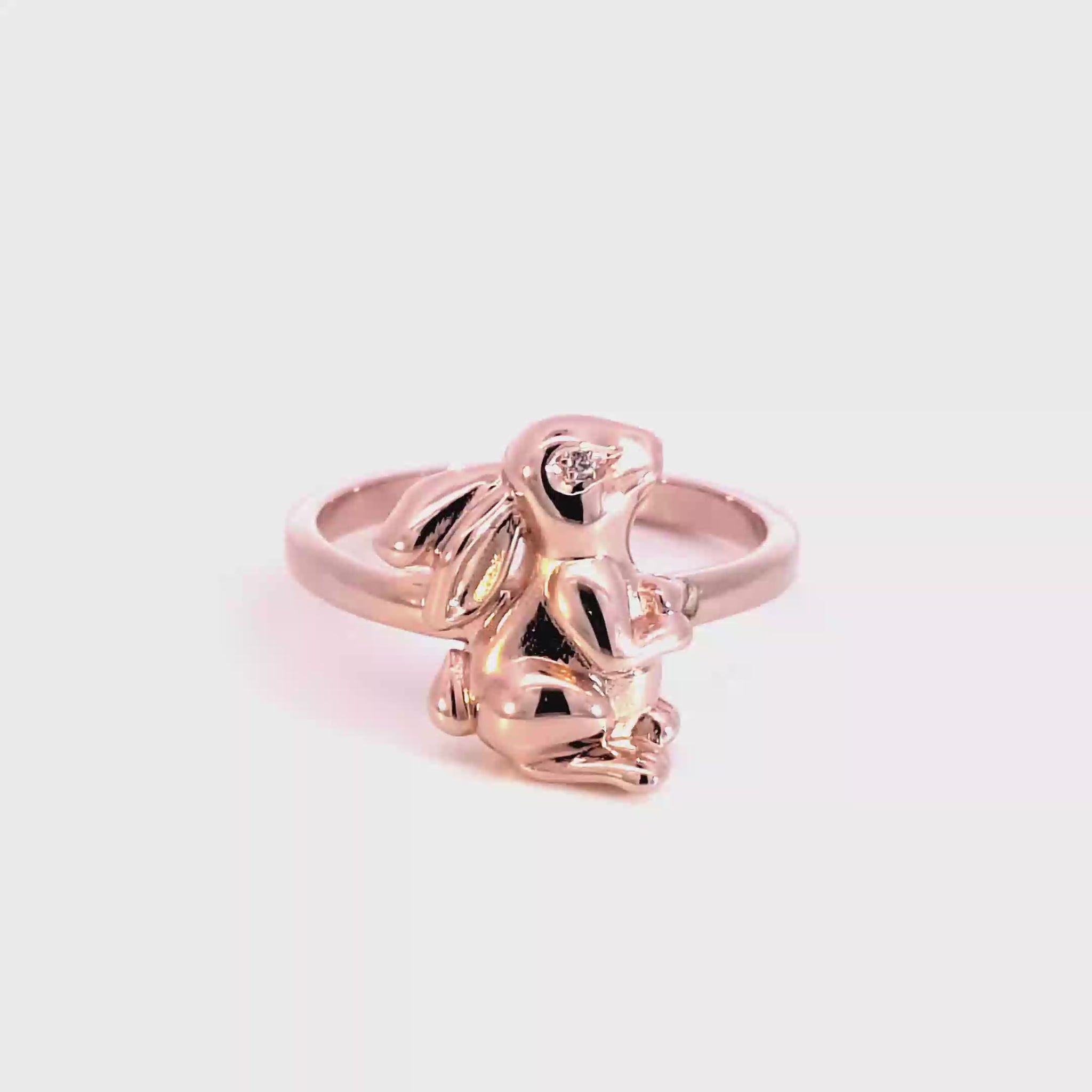 Rose Gold Rabbit Cocktail Ring with Round Cut Diamond Eye - Kids