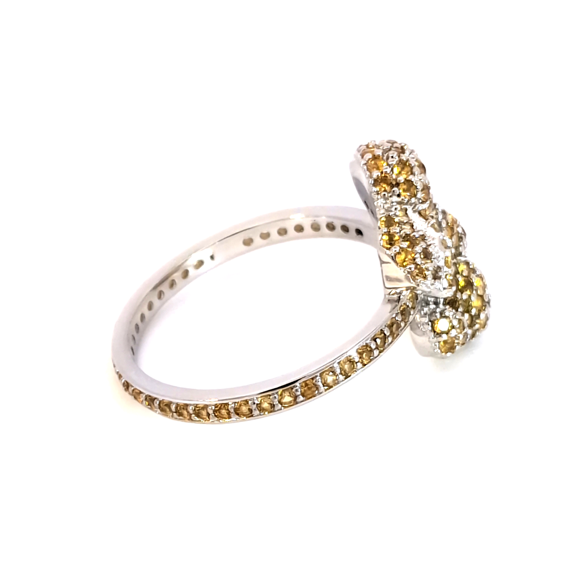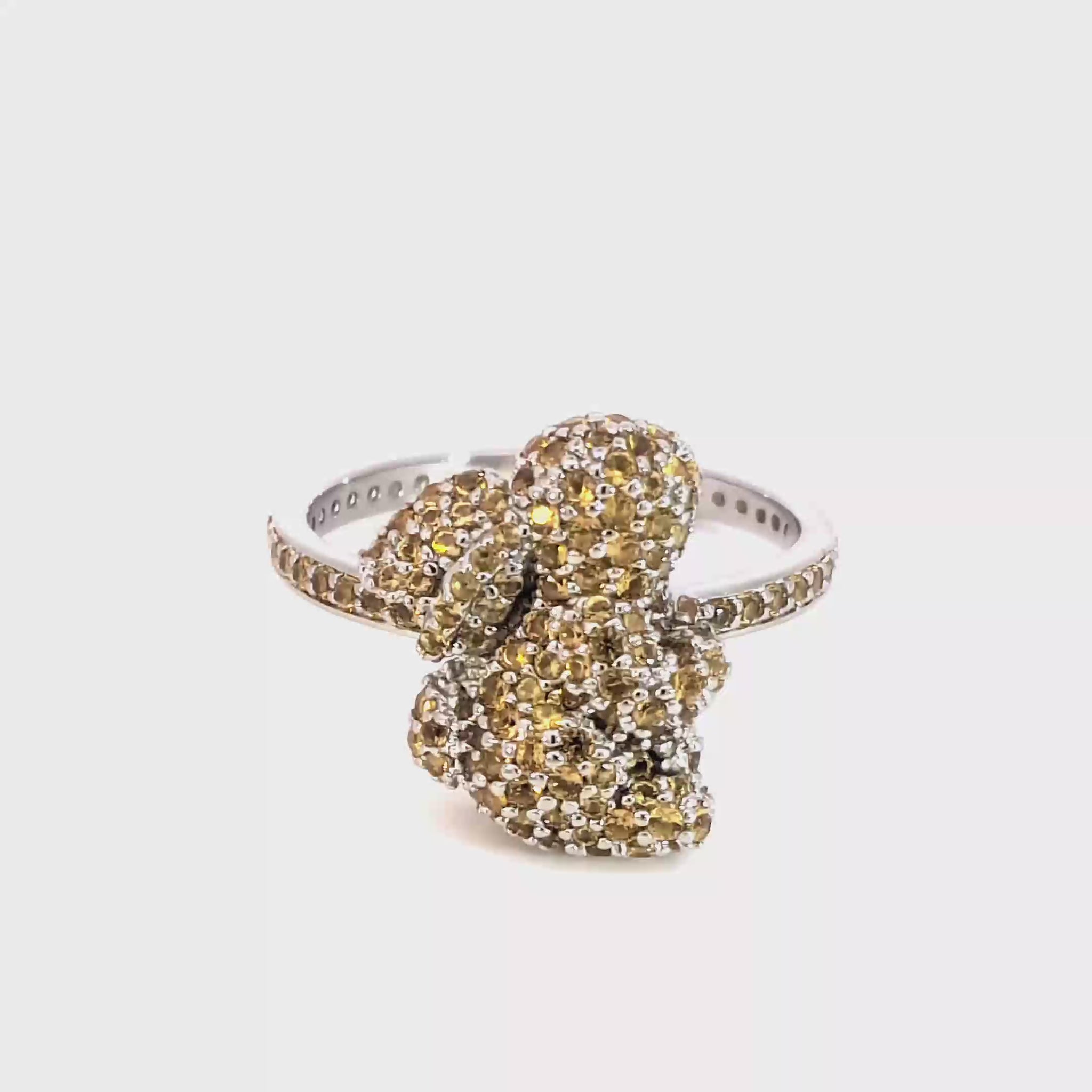 White Gold Plated Silver Cocktail Ring with Citrine Gemstones