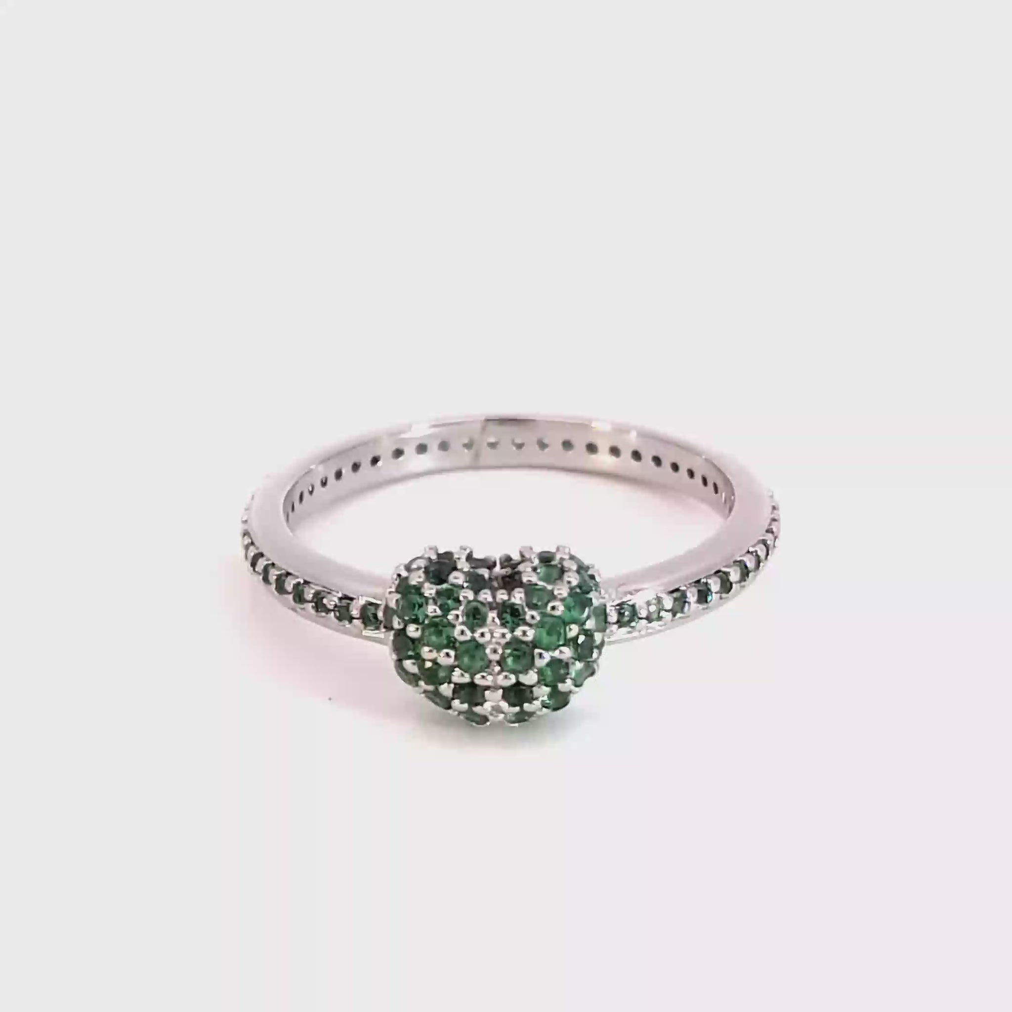 Exquisite multistone ring crafted in lustrous white gold plated silver for kids. Showcasing a captivating array of round brilliant cut emeralds, this ring exudes timeless elegance. The verdant green of the emeralds contrasts beautifully with the polished silver setting, creating a harmonious and sophisticated design. A mesmerizing piece to adorn any occasion.