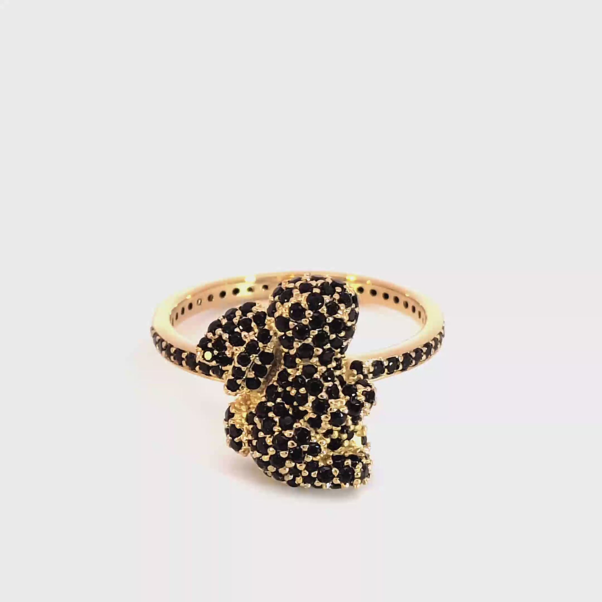 Yellow Gold Cocktail Ring with Onyx Gemstones Rabbit