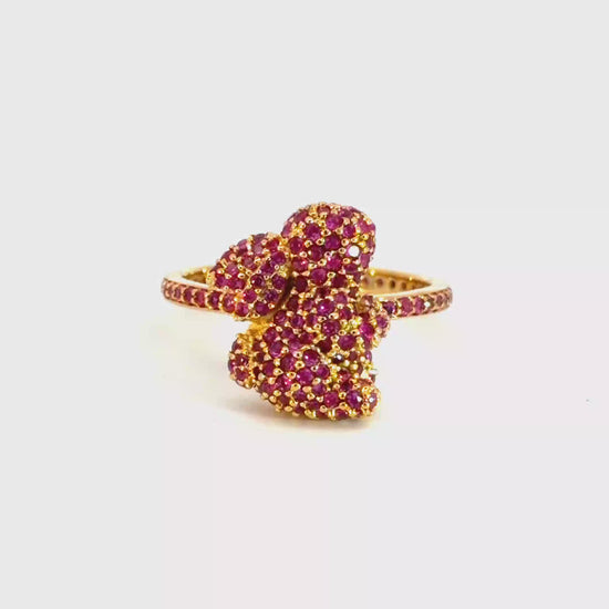 Yellow Gold Cocktail Ring with Round Brilliant Cut Rubies - Kids