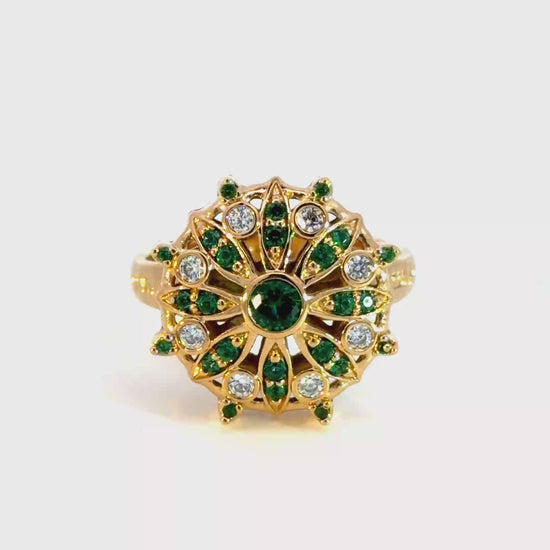 Yellow Gold Cocktail Ring with Round Emerald Center Stone