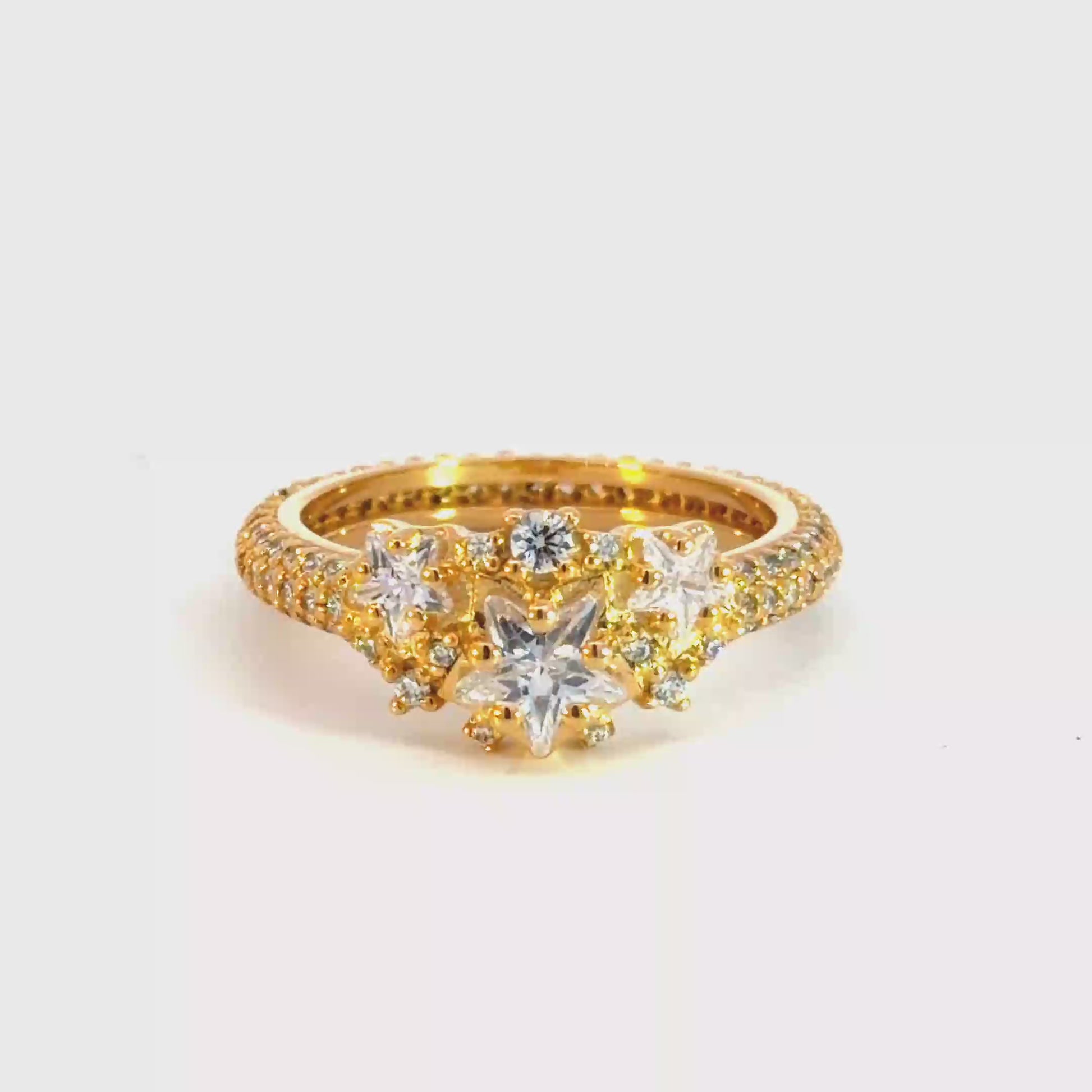 Embrace celestial charm with this yellow gold multistone ring. The ring features a star shaped diamond with a brilliant cutting style. This radiant ring adds a touch of whimsy and sophistication to any ensemble, perfect for adding a unique sparkle to your jewelry collection.